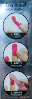 The photo below is from the side of the box. Detailed instructions are inside, but it's pretty much what you see in the photo below. You'll clean and smooth out your nails, apply the design, smooth it out, and move on. I put detailed instructions on how to apply these strips on the Misbehaved post.