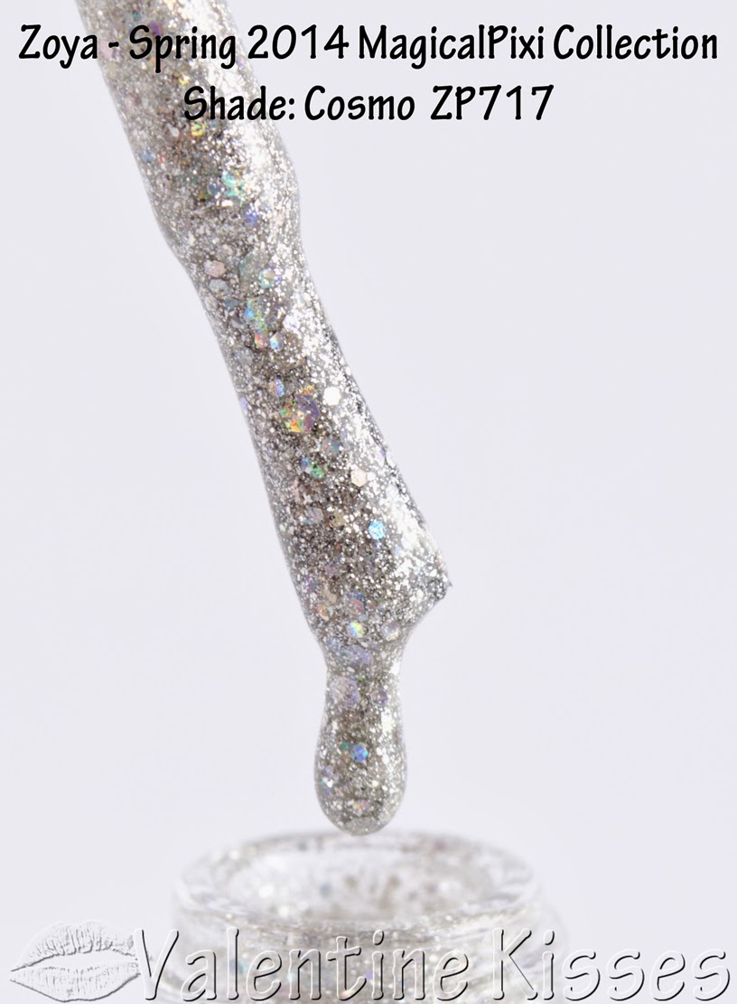 - Cosmo - a silver crystal sparkle, textured PixieDust with mega hex iridescent particles. Has a neutral tone and is in the silver family. PixieDust finish. Opacity level 4.